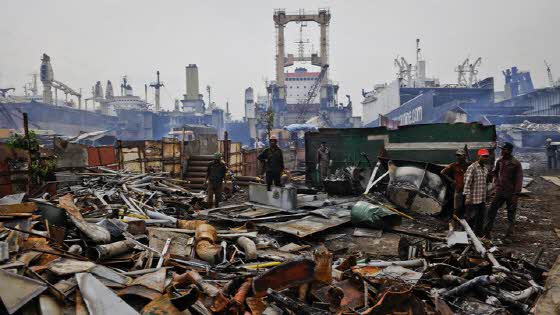 | ▲ 인도 알랑(Alang)에 위치한 폐선조선소 모습.ⓒNewsX |
